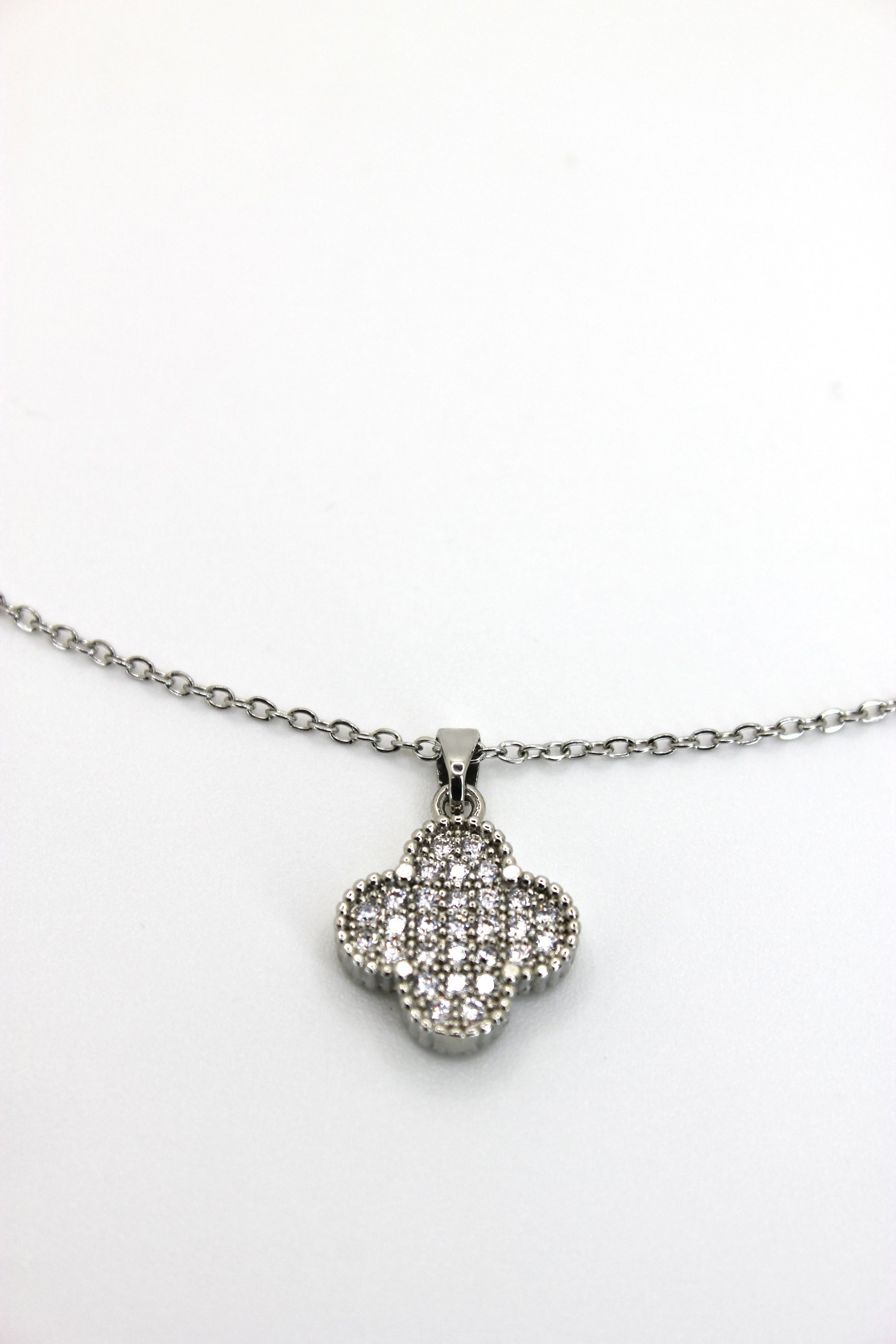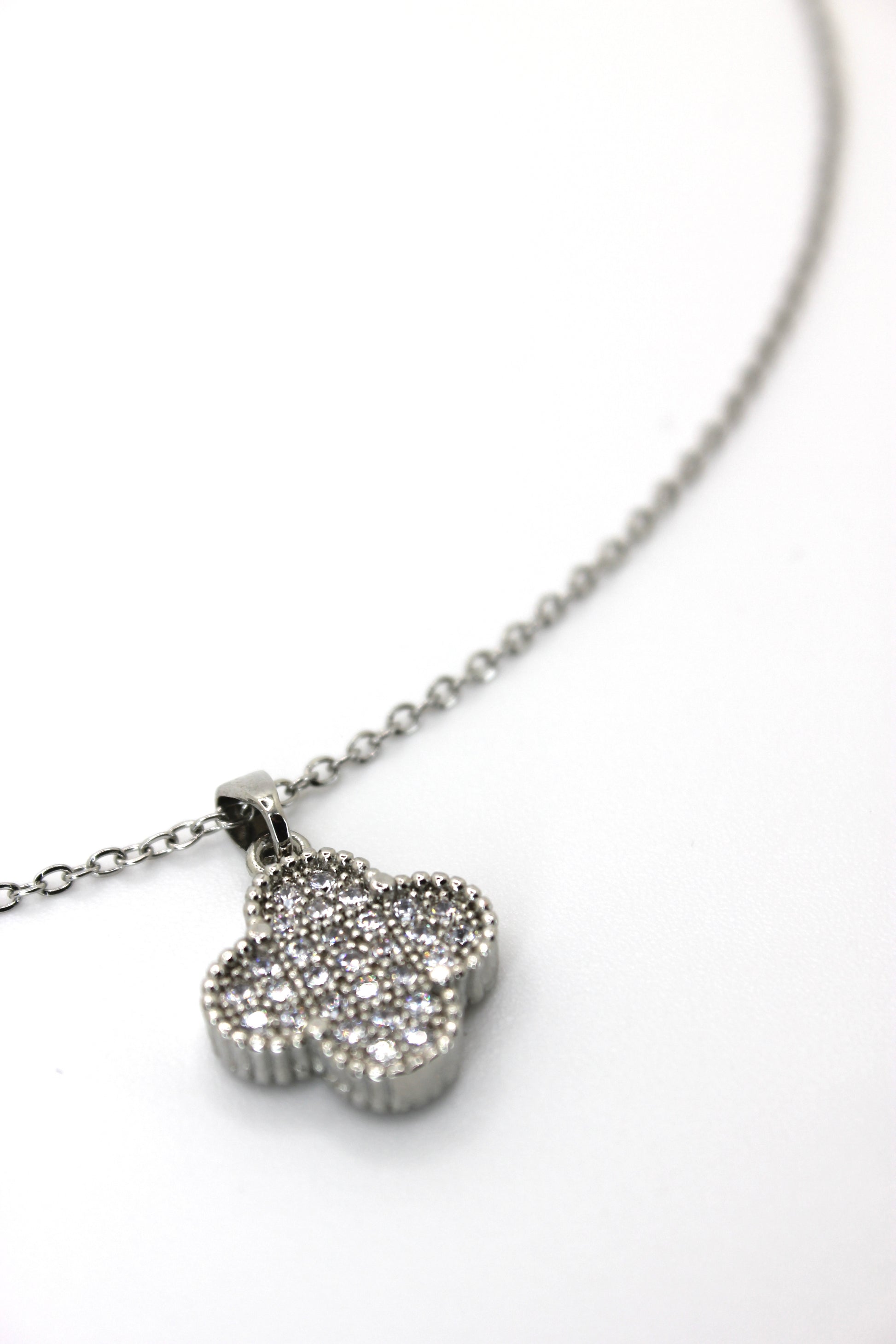 Minimaliste et lumineux, le collier Noor se distingue par son pendentif trèfle pavé de cristaux, sublimé par un plaquage or éclatant et monté sur une chaîne en acier inoxydable.