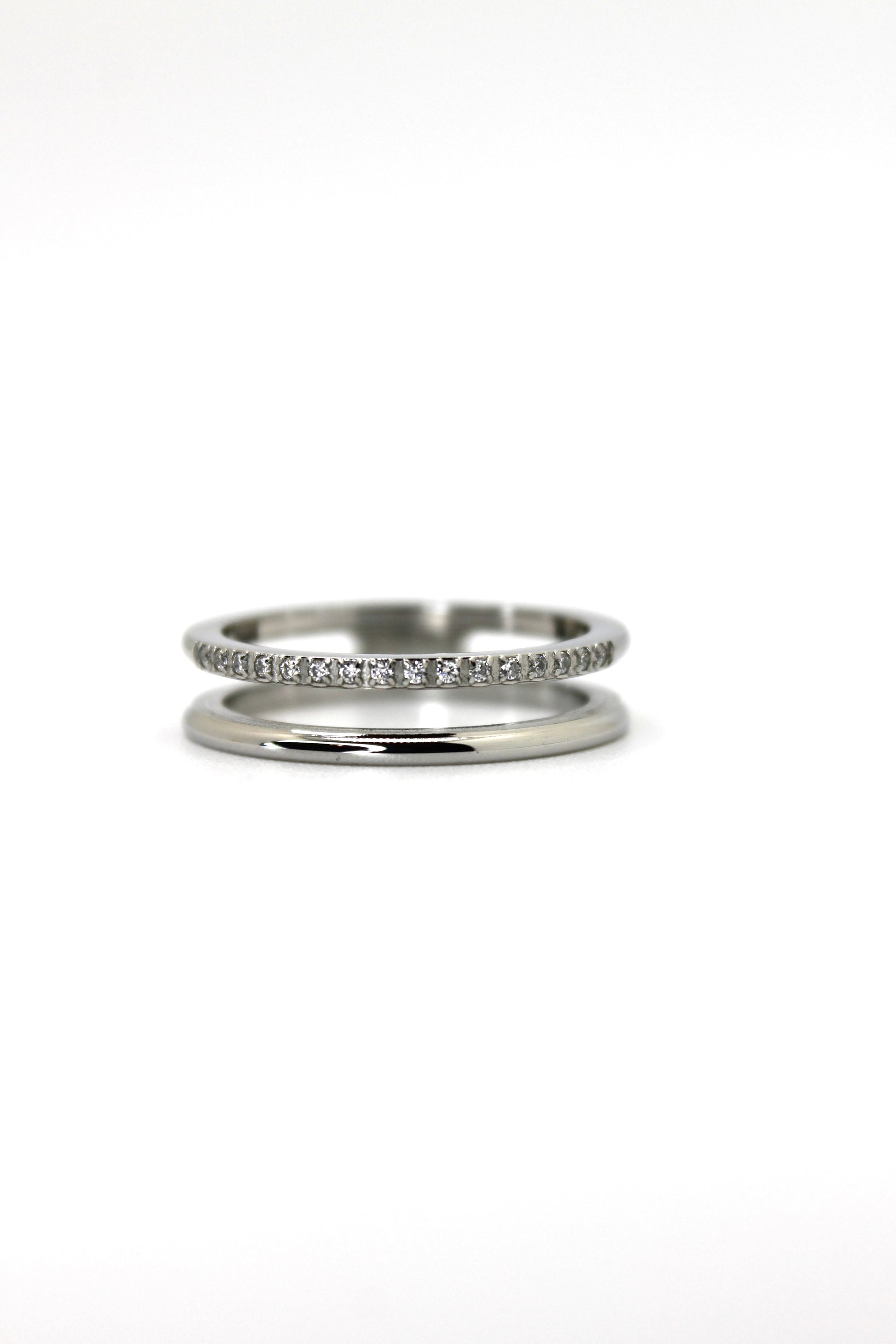 Minimaliste et lumineuse, la bague Gioia réunit deux anneaux fins, l’un lisse et l’autre délicatement serti de cristaux scintillants, pour un jeu d’éclat subtil et raffiné. Sa silhouette épurée apporte une élégance naturelle, parfaite aussi bien portée seule qu’en accumulation.